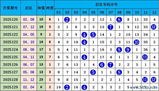 上期后区开出号码02 04,为小小组合,其中开出开出小小组合2期,开出大大组合3期,开出小大组合7期,本期琢磨大大组合强势开出,要点关爱号码:08 09。